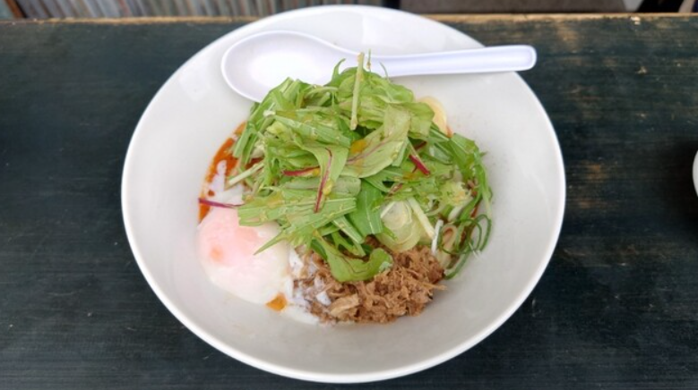 「まぜそば専門店 modern(モダン)ラーメン 草加」は、濃厚まぜそばと中太ストレート麺が特徴の草加駅周辺ラーメン店です。チャーシューや味玉、メンマ、ネギなどトッピングも丁寧に盛り付けられ、スープがなくても旨味を楽しめる一杯です。ランチやディナータイムには地元客で賑わう人気店です。