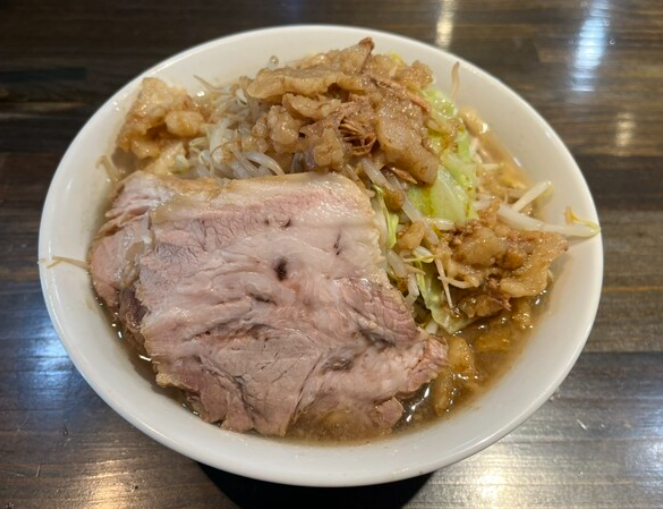 “二郎系”インスパイアとして知られるこの店は、極太麺・たっぷりのヤサイ・厚切りチャーシューなどガッツリ系の王道を踏襲。つけ麺仕様もあり、スープの粘度や麺の量をコントロールできる点が魅力。学生・若年層の支持が強く、夜営業も定評あり。ただし、常連向けのコール(ニンニク・アブラ・カラメ)文化があるため、初訪問時は控えめ設定がおすすめ。駅から少し歩く・混雑ありという点も念頭に置きたい。