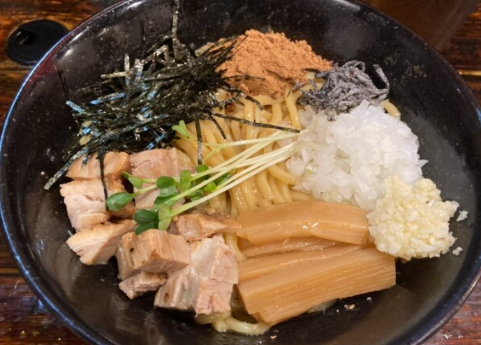 濃厚つけ麺の名店として有名な「麺屋あびすけ」。豚骨魚介のスープは粘度が高く、コクと旨味が凝縮されています。太麺はモチモチとした食感で、スープとの絡みが絶妙。特製つけ麺はボリューム満点で、トッピングのチャーシューや味玉の完成度も高い。ランチタイムは常に行列ができるほどの人気で、がっつり食べたい人におすすめの一軒です。
